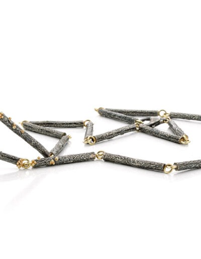 Maar een paar jaar geleden scrolde ik door oude foto’s van mijn werk en zag ik die zilver-goudcombinaties weer terug. En ik dacht: waarom ben ik hier eigenlijk mee gestopt? Ik zag opnieuw hoe sterk het contrast was en hoeveel karakter het zilver gaf aan een ontwerp. Dat wilde ik weer terug in mijn werk.
