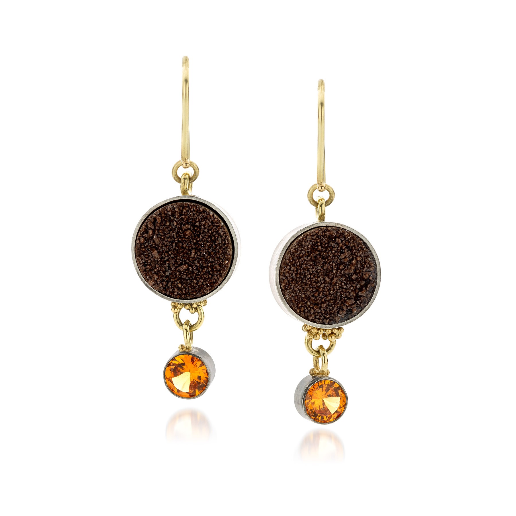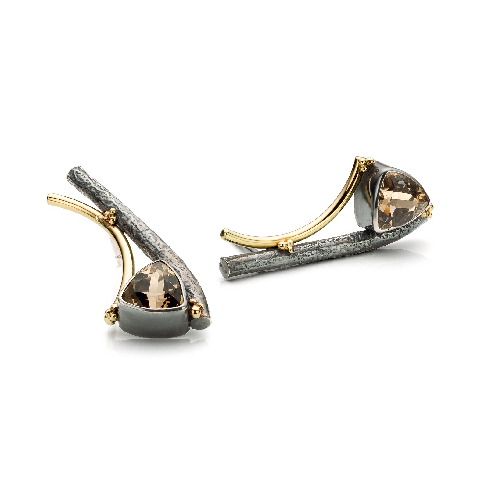 De naam Aurargent is een samenvoeging van aurum (goud) en argentum (zilver). De naam zegt precies wat het is: een combinatie van twee edelmetalen die elkaar versterken. In deze collectie krijgt zilver de basisrol, terwijl goud bewust wordt ingezet als accent: in een zetting, in granules of om een edelsteen sterker neer te zetten.