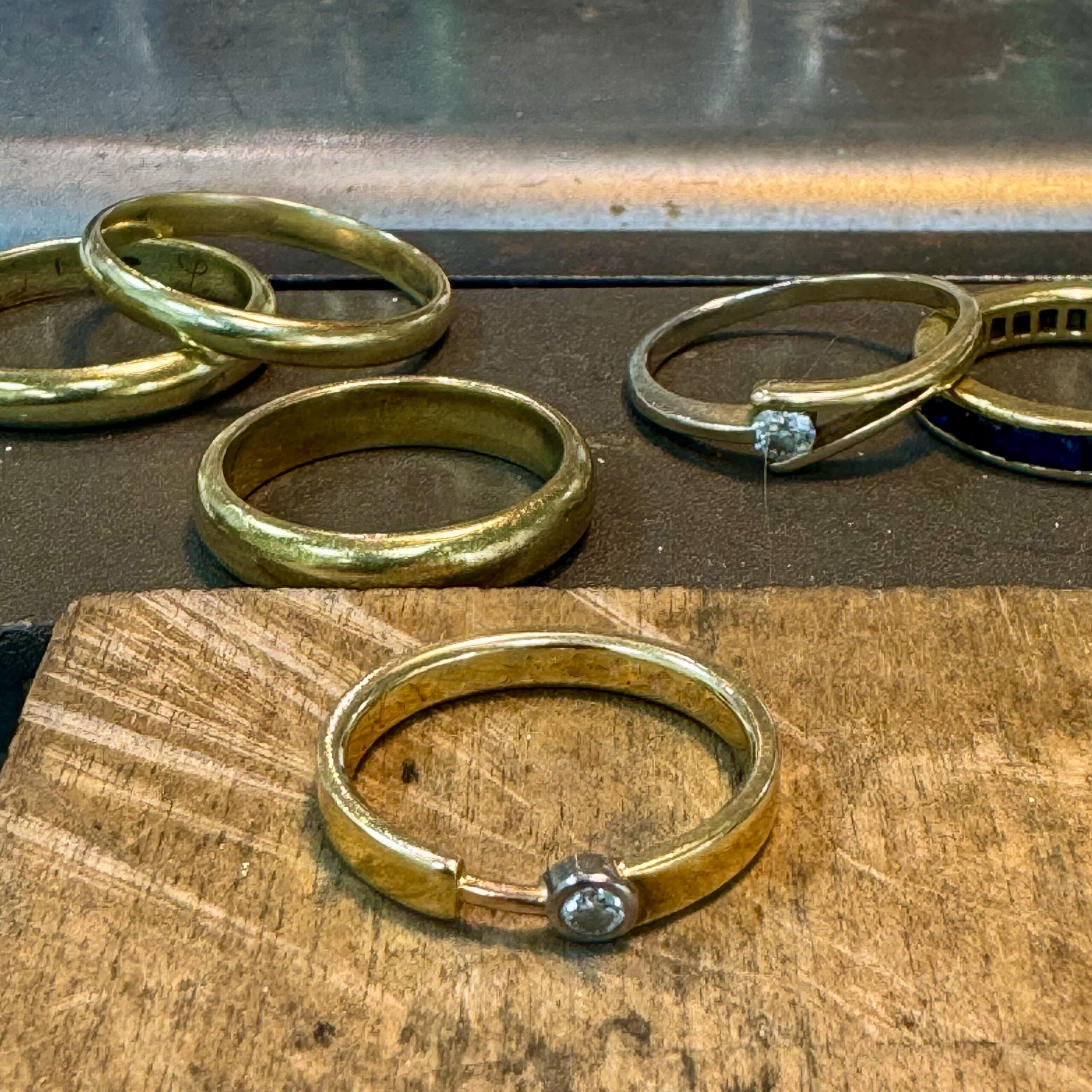 Op deze pagina ziet u een selectie van sieraden die ik in de afgelopen jaren in opdracht heb mogen maken. Het zijn stuk voor stuk persoonlijke ontwerpen, variërend van subtiele aanpassingen tot volledig nieuwe creaties. Veel is mogelijk, ook wanneer u eigen – emotioneel waardevolle – goud heeft dat u niet meer draagt en graag een nieuwe betekenis wilt geven.