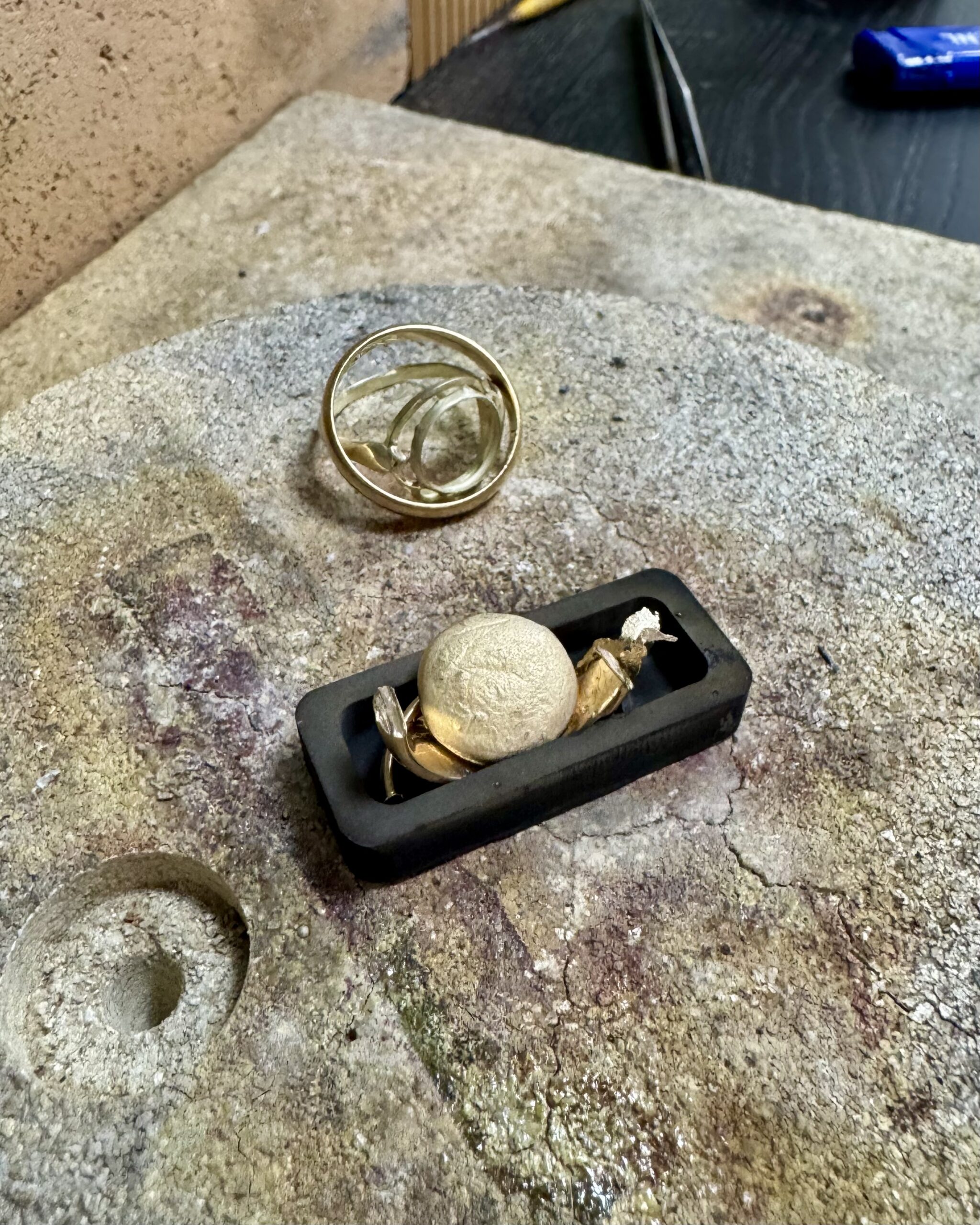 Als u graag as wilt laten verwerken, kan dat op een veilige en duurzame manier. Hiervoor maak ik een volledig dichtgesoldeerde ruimte, zodat de as beschermd blijft. Ik werk bewust niet met epoxyhars, omdat dit na verloop van tijd verkleurt en niet duurzaam is. As verwerken is een mogelijkheid wanneer dit past bij het sieraad dat u voor ogen heeft.